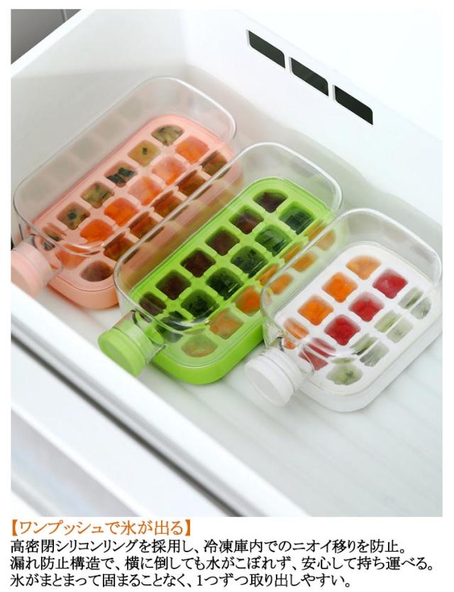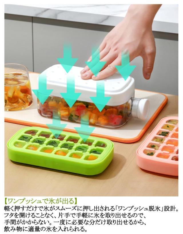 | 「最新型」水筒として利用可能!味が混じりません 耐久性のある製氷器 ワンクリックと氷が落とす 製氷機 アイスボトル 2in1水筒型製氷皿 【 2WAYデザイン】冷凍庫で氷を作り、そのままストックできる新発想デザイン。氷を取り出す際はワンタッチで簡単に脱氷でき、手を汚さず衛生的。ストローを差し込めばそのままウォーターボトルとして使用可能で、ドリンクを冷やしながら楽しめる。 【ワンプッシュで氷が出る】軽く押すだけで氷がスムーズに押し出される「ワンプッシュ脱氷」設計。フタを開けることなく、片手で手軽に氷を取り出せるので、手間がかからない。一度に必要な分だけ取り出せるから、飲み物に適量の氷を入れられる。 【 360°密封デザイン】高密閉シリコンリングを採用し、冷凍庫内でのニオイ移りを防止。漏れ防止構造で、横に倒しても水がこぼれず、安心して持ち運べる。氷がまとまって固まることなく、1つずつ取り出しやすい。 【2サイズ展開】大容量800MLと500MLの2種類を用意。家族用としても、一人暮らしのちょっとしたアイス作りにも活躍。分解可能でお手入れ簡単、隅々まで洗えて衛生的。 | |