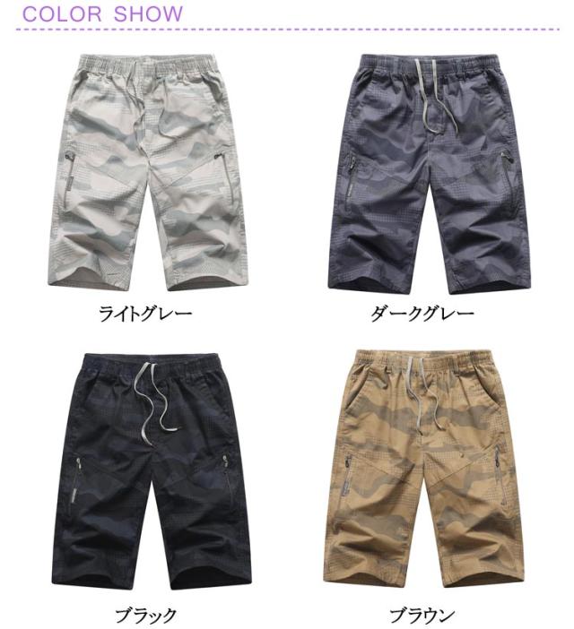 ショートパンツ カーゴ カーゴパンツ 7分丈 膝下 大きいサイズ ハーフパンツ ショートパンツ 七分丈 ボトムス 迷彩 ミリタリー クロップドパンツ スポーツ メンズ ワーク 夏用 作業ズボン 作業着 カーゴショーツ 父の日 ギフト プレゼント