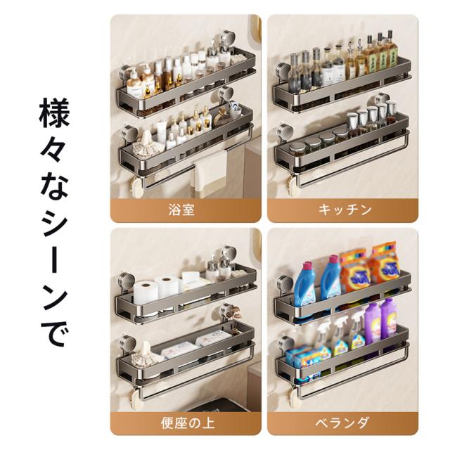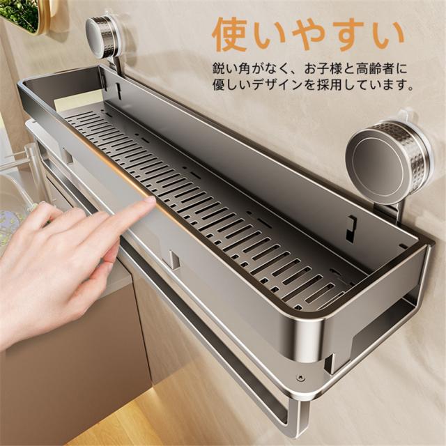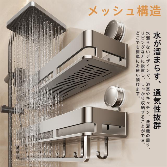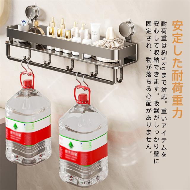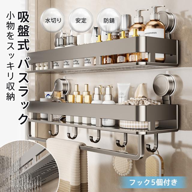 浴室ラック 吸盤 お風呂 収納 シャンプーラック 錆びにくい 水切り ふきん掛け 多機能 バスルーム キッチン 洗面所 浴室用 石鹸置き 壁掛け棚 省スペース 壁掛け キッチン収納 調味料入れ 調味料置き 浴室用ラック 防水防錆 5個フック 強力吸盤 穴あけ不要 強力吸盤固定