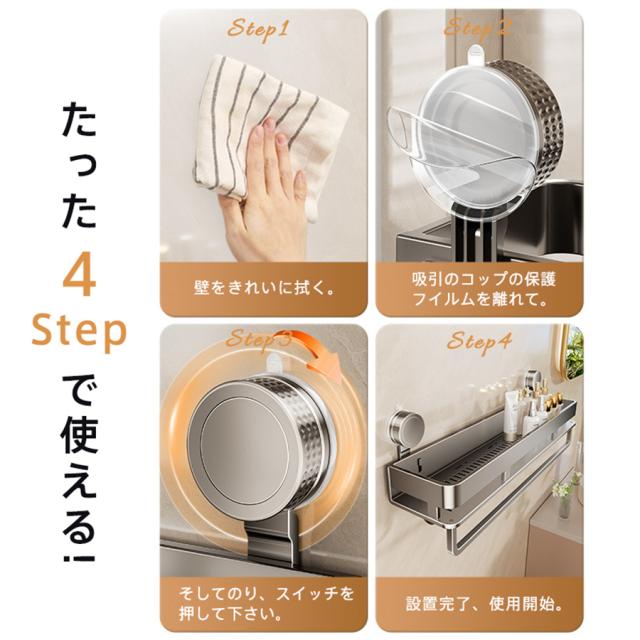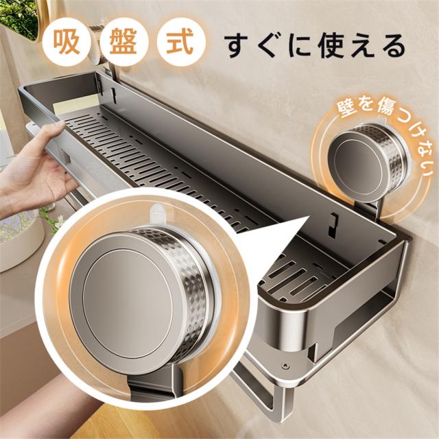 ・壁面に穴を開けずに、強力吸盤式収納ラック!