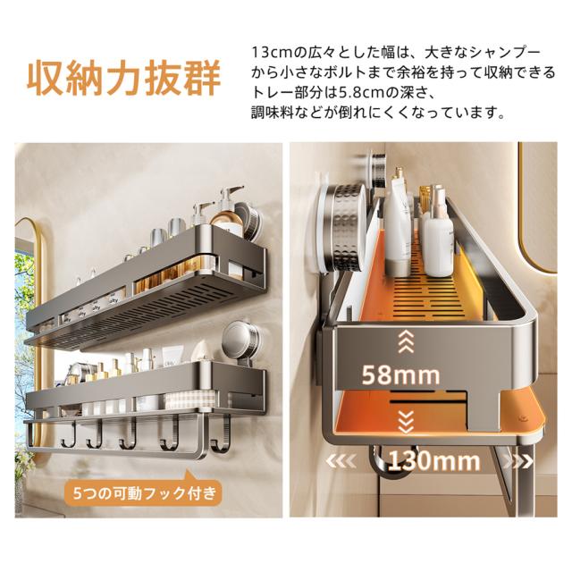 ・浴室のシャップやキッチンの調味料をすっきり収納できます