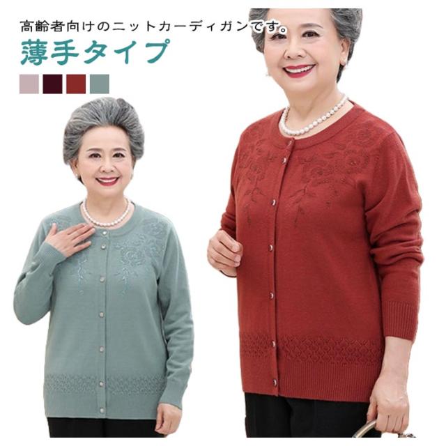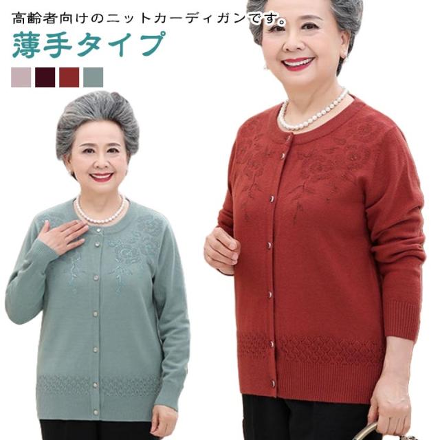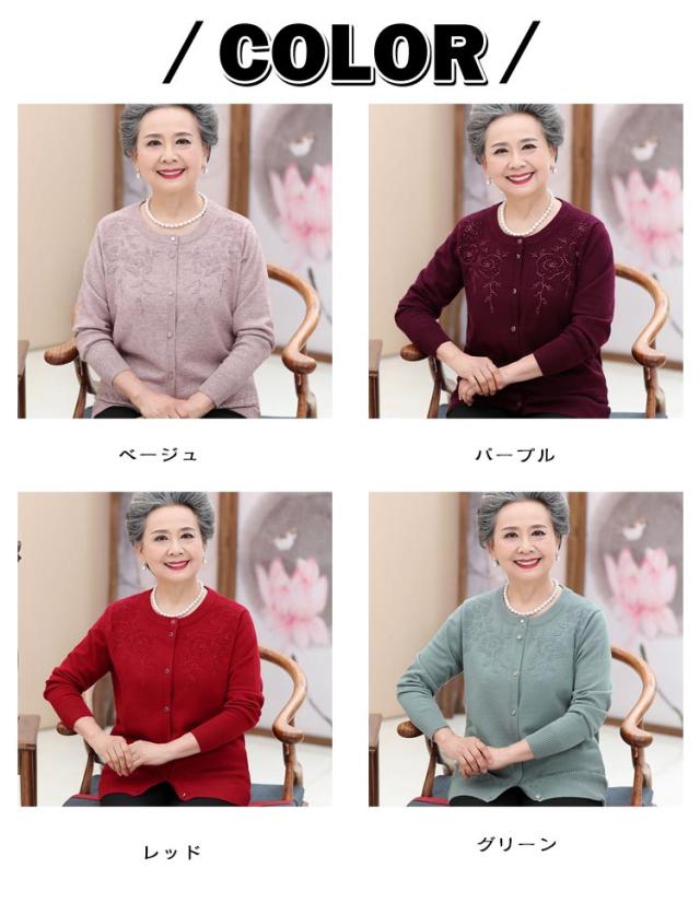 洋服 秋冬 春 高齢者 シニアファッション 薄手 ニット 羽織り ウール混 クルーネック 婦人 レディース 90代 花柄 60代 70代 80代 おしゃれ おばあちゃん ニットカーディガン ミセス 祖母 お年寄り ゆったり 老人 トップス 施設 着やすい 敬老の日 プレゼント ギフト