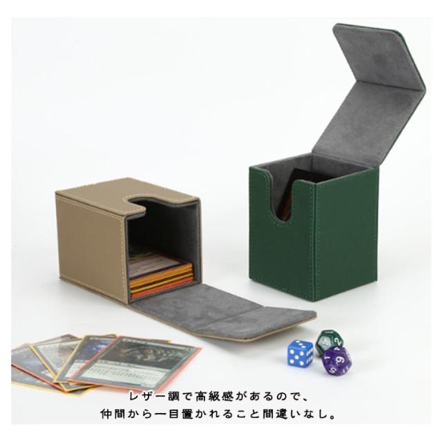 | トレカ(トレーディングカード)の収納に最適なカードデッキケース。 多種カードに対応。タイプによってカードを約100枚〜230枚収納可能。 格が上がる、魅せるカードデッキケース。 ダメカン・ダイス等の小物を収納出来る引き出し付きのタイプやプレイマット収納可能なタイプも選べ、かゆいところに手が届く豪華仕様。 レザー調で高級感があるので、仲間から一目置かれること間違いなし。 せっかく集めたカードだからこそ、大切にそしてしっかりと保管したいもの。 外側は丈夫で汚れにくい合皮素材を使用しているため、大切なカードを外部の衝撃からしっかり守ります。 一方、内側は柔らかいナイロン素材を使用し、カードにキズがつきにくい構造になっています。 マグネットの蓋でスムーズ開閉を実現しているので出し入れもしやすいし、「ぱかっ」という音も心地よい。 | |