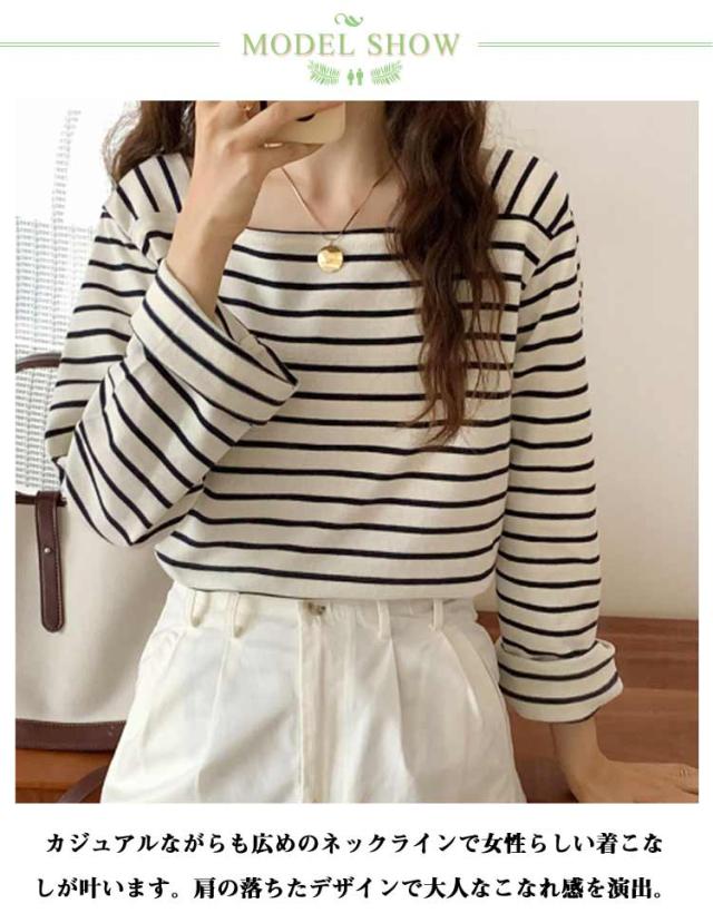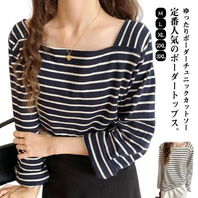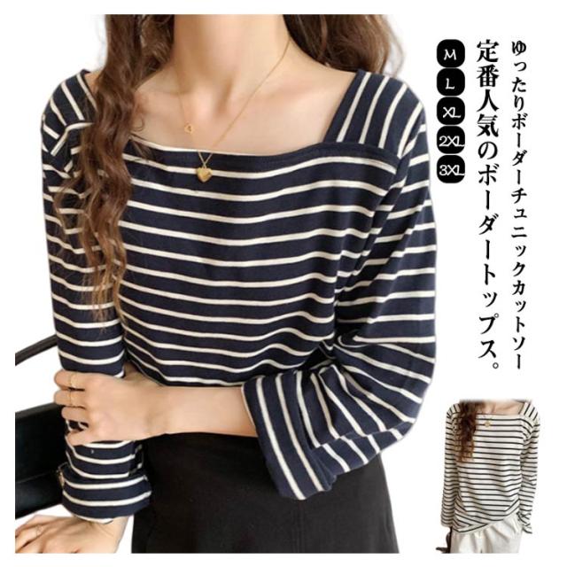 ボートネック ボーダーチュニックカットソー トップス ボーダー ボーダーT ロンT レディース 40代 長袖 tシャツ レディース インナー 長袖 重ね着 体型カバー カジュアル チュニック ゆったり シンプル 20代 30代 ボーダーチュニックカットソー 春 秋 冬