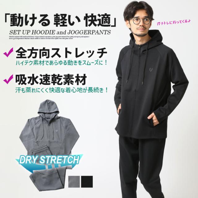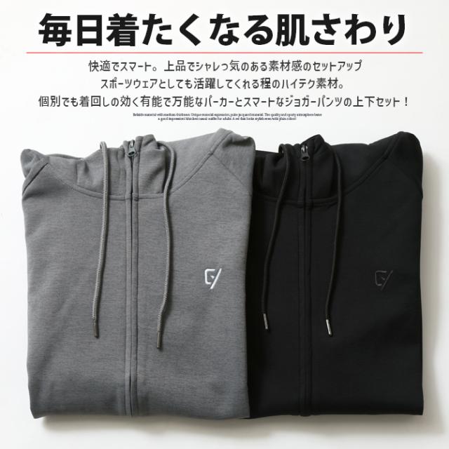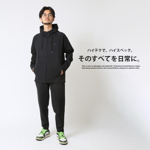 セットアップ メンズ 秋新作 パーカー ジョガーパンツ 上下セット 中肉 全方向ストレッチ リフレクター刺繍入り ハイテクドライストレッチ