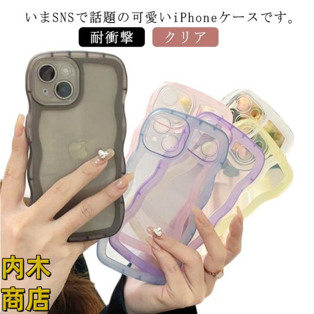 黒 なみなみ うねうね 13 ウェーブ 耐衝撃 透明 クリア ケース かわいい 韓国 大人かわいい 14 スマホケース おしゃれ シリコン 全6色!クリアケース 可愛い 12