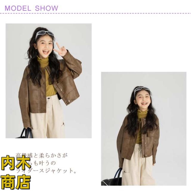 | \大人気レザージャケットがキッズに登場!/ ・高級感と柔らかさがどちらも叶うのライダースジャケット。 ・カジュアルな雰囲気作る裾と袖のリブ! ・すっきり着痩せする拘りのシルエット! ・軽くて動きやすく着心地抜群! | |