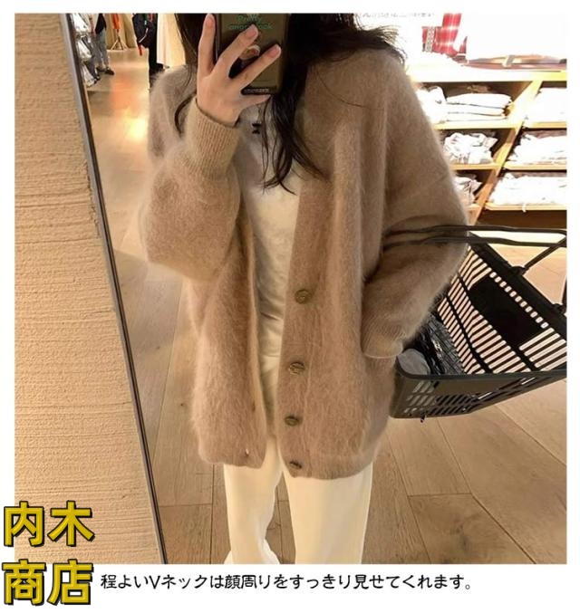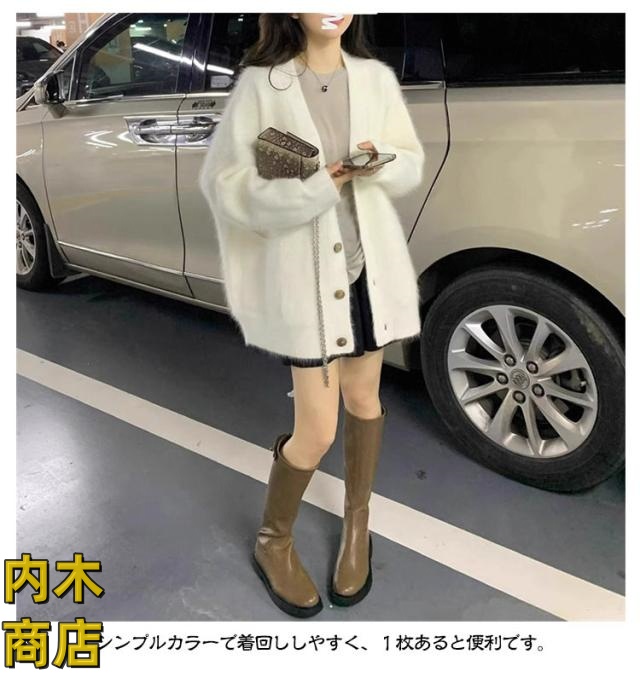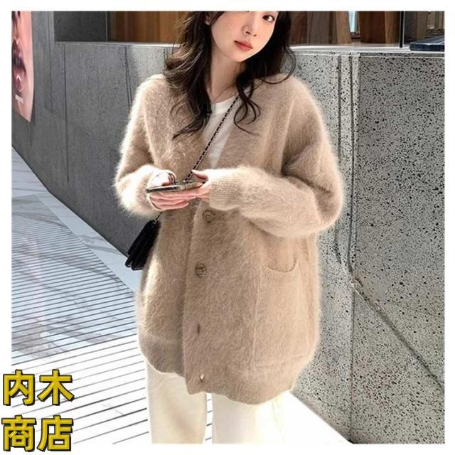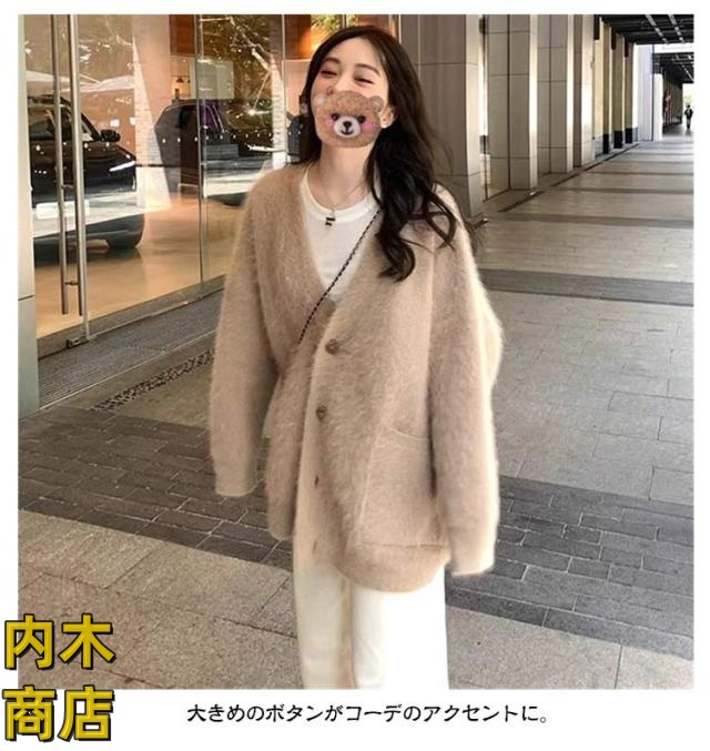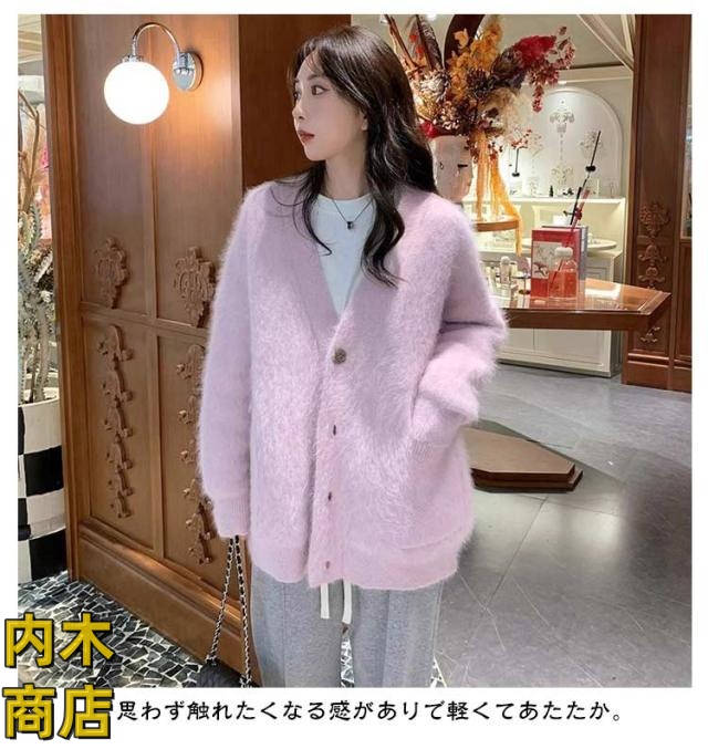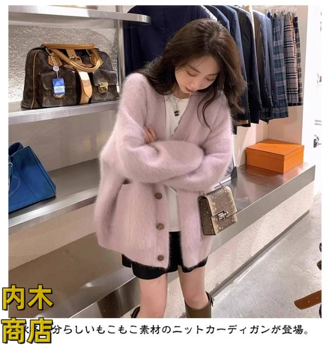 キレイめ ネック ニットカーディガン もこもこ ブラウン 送料無料 レディース カーディガン ゆったり パープル 秋冬 ふわふわ 大きサイズ ニット ニットコート ファーカーディガン