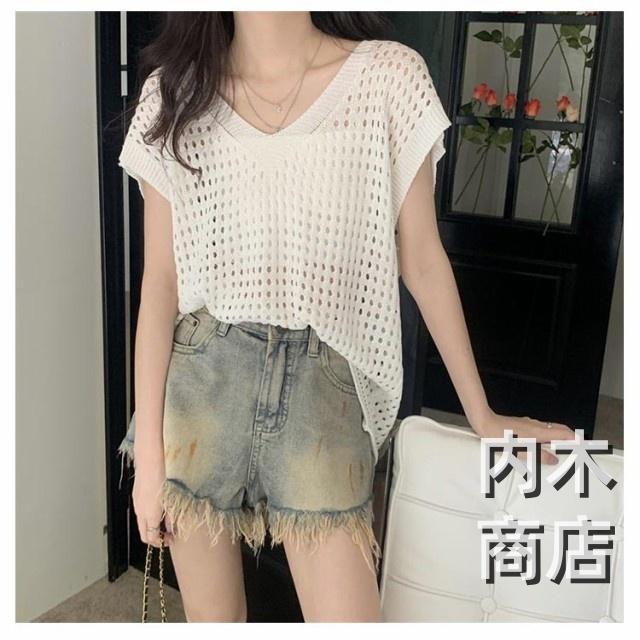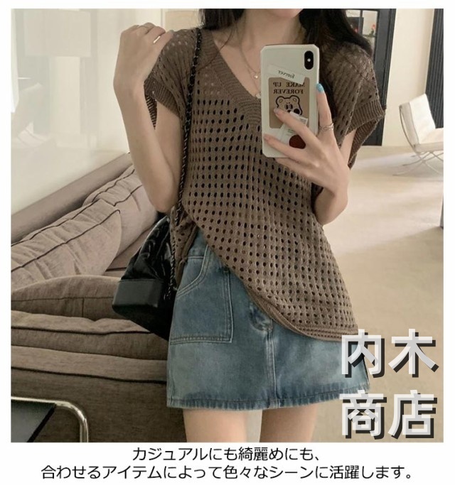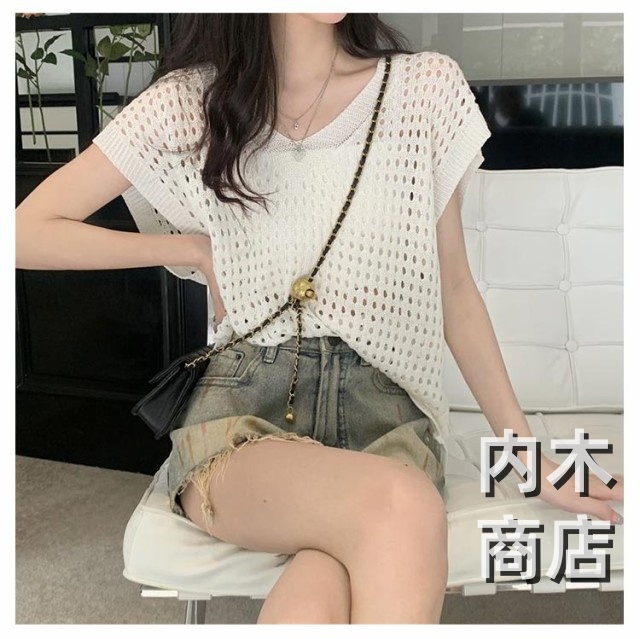 | 透かし編みデザインの半袖サマーニット。 柔らか涼しげで素肌に触れても心地よい。 Vネックラインは、顔回りをシャープに見せてくれます。 透け感のあるサマーニット素材でストレスフリーな着心地を叶えます。 コンパクトなショート丈だから、ボリュームのあるボトムスやスカートにも相性抜群! カジュアルにも綺麗めにも、合わせるアイテムによって色々なシーンに活躍します。 | |