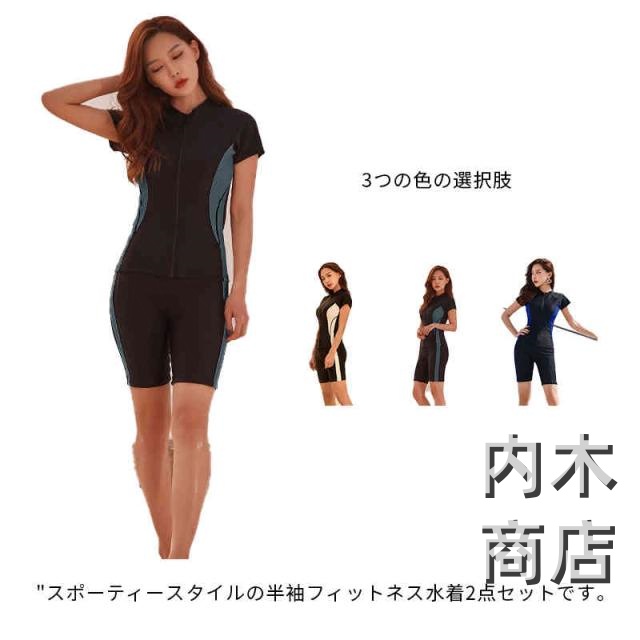 セパレート レディース 競泳水着 ママ水着 露出控えめ ミセス 2点セット スイムウェア 女性 初心者 フィットネス水着 ハーフパンツ 水泳 スポーツウェア 上下セット かわいい 大きいサイズ 体型カバー水着 半袖 パッド付