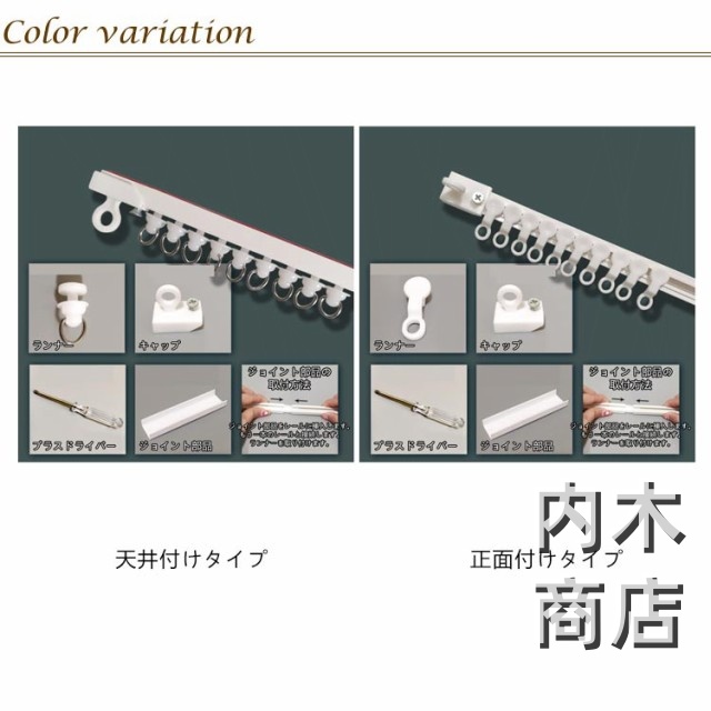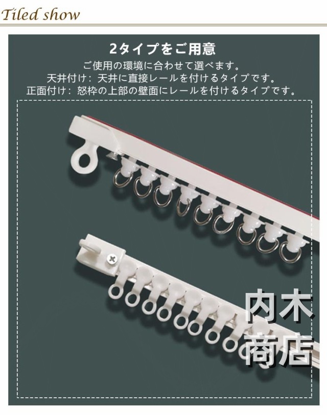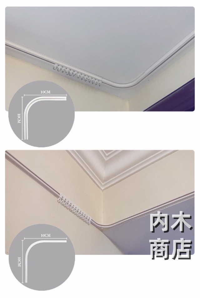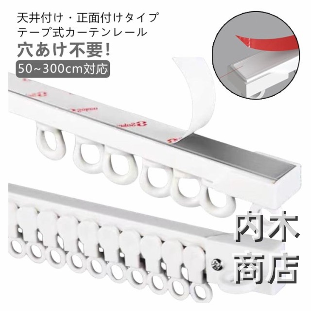 | 穴あけ不要! テープ式カーテンレール 50~300cm対応 天井付け・正面付けタイプ <お勧めポイント> ●2タイプをご用意 ご使用の環境に合わせて選べます。 天井付け:天井に直接レールを付けるタイプです。 正面付け:怒枠の上部の壁面にレールを付けるタイプです。 ●穴開け不要の粘着式 壁に穴を開けずに簡単に取り付けられます。強力な両面テープを採用、高い粘着力・耐熱性があり、安定感を得られてしっかりと固定できます。 ●軽く滑ることができる 新しいタイプのランナーでストレスなくカーテンの開閉がスムーズにできます。 ●開閉音が静かに ランナーはレールと同じのABS樹脂を採用され、開閉音が静かでカーテンの開け閉めが快適です。 ●レールの長さを決める 50cm~300cmの長さをご自由に決めます。 内蔵式のジョイント部品を付属されます。継ぎ目が目立たず、美観を保つことができます。 ●柔らかい素材なのでカットすることもできますよ~! ※カットする際には、カッターナイフやのこぎり等をお勧めします。ハサミで切ると、端が不揃いになりますのでご注意ください。 ●幅の狭いタイプ |狭い窓枠や材板等にもピッタリします!。 ●シンプルなデザイン おしゃれでシンプルなデザインで 手軽におしゃれな空間を生み出せます。 ●簡単に設置できる 両面テープにあるシールを剥がして、設置場所に貼り付けるだけで完成です。 | |
