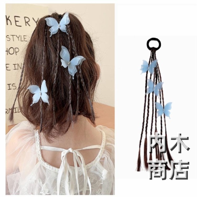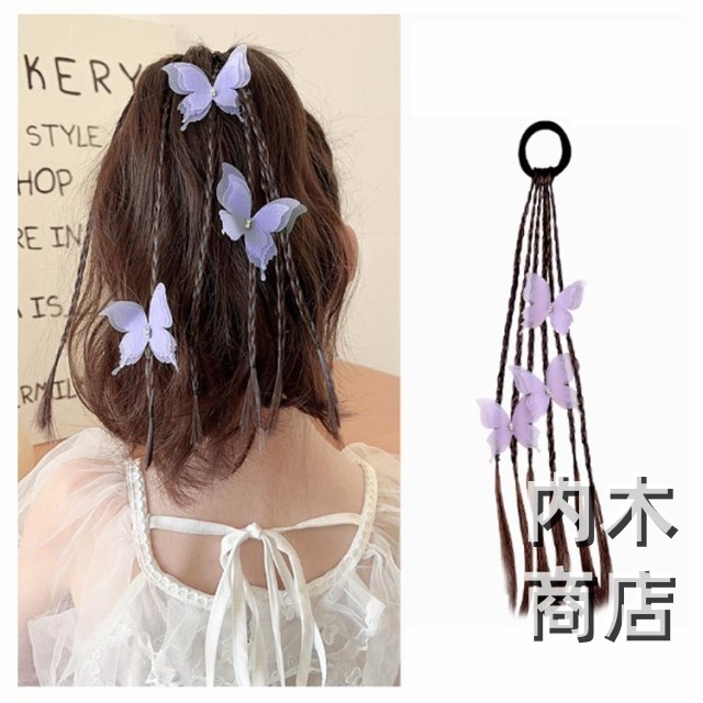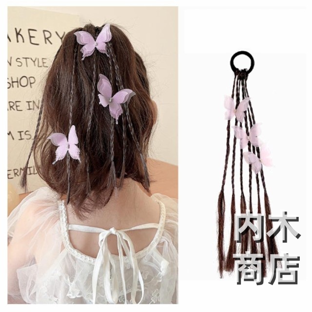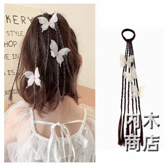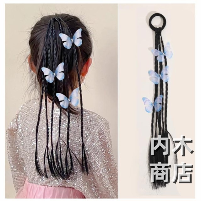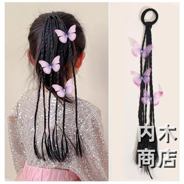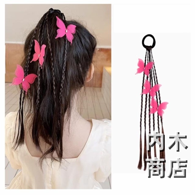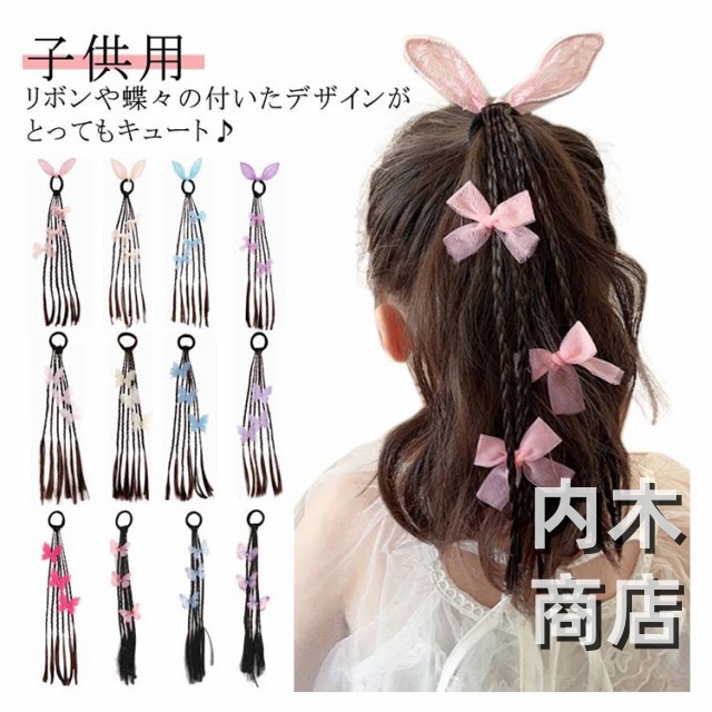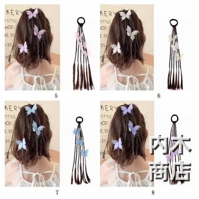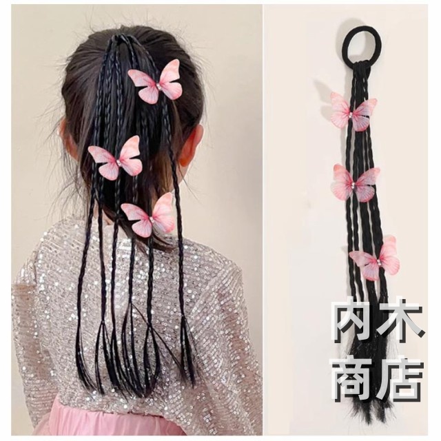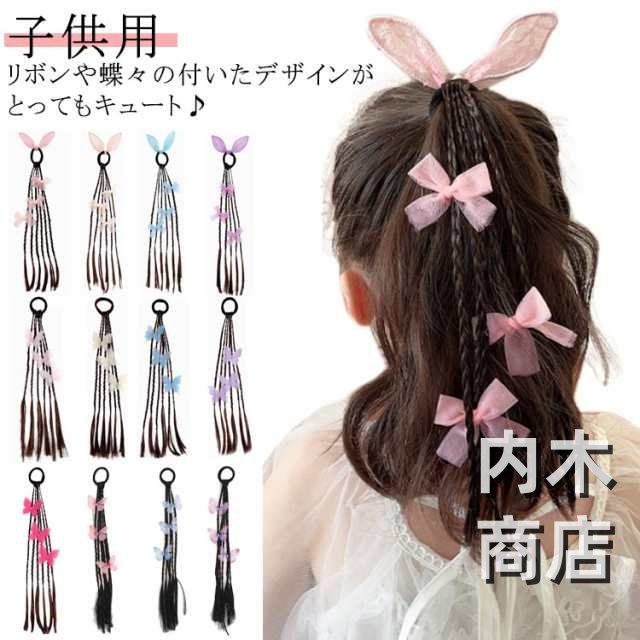 髪留め ゴム付き ひな祭り エクステ キッズ キッズ キッズ 可愛い蝶やリボン付き ウィッグ つけ毛 ヘアアクセサリー エクステ 編み込み ヘアゴム ウィッグ ポニーテール キッズダンス衣装 ヘアエクステ 送料無料 七五三 三つ編み