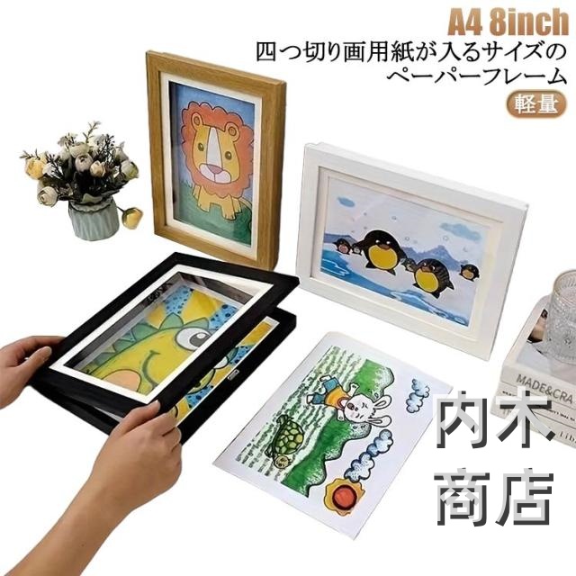 | A4 8inch 四つ切り画用紙が入るサイズのペーパーフレーム 子供の絵を美しく飾るためのアートフレームです。 保管用途に最適!似顔絵も保存可能! 多機能額縁!画用紙・フォトフレームにもなる。 | |
