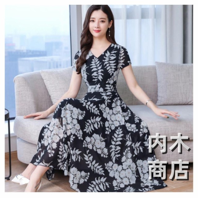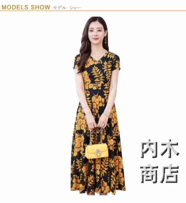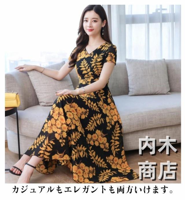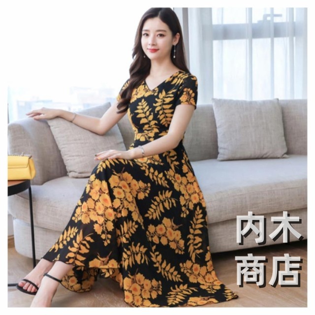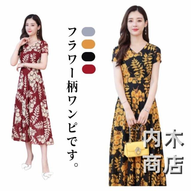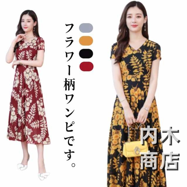 花柄 春夏 大きいサイズ マキシ丈 ブラックイエロー カジュアル レッドイエロー きれいめ ブラックレッド 花柄 ネック レディース フレア ライン ロング 春 ワンピース マキシ丈ワンピース ワンピース ネイビー ロング 大人 レトロ
