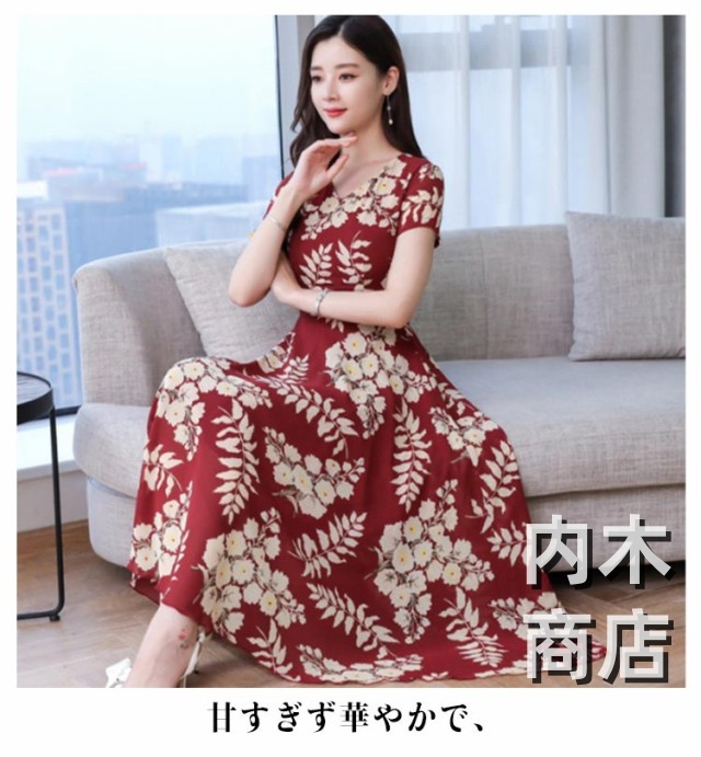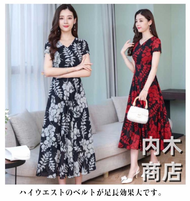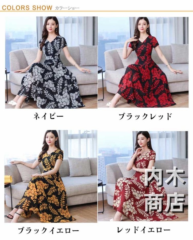 即納OK ランキング常連 ブラックイエロー ブラックレッド レディース 春 マキシ丈 ネイビー 花柄 ワンピース マキシ丈ワンピース 大きいサイズ レトロ ロング ネック きれいめ フレア 春夏 カジュアル 大人 レッドイエロー ライン 今だけ限定