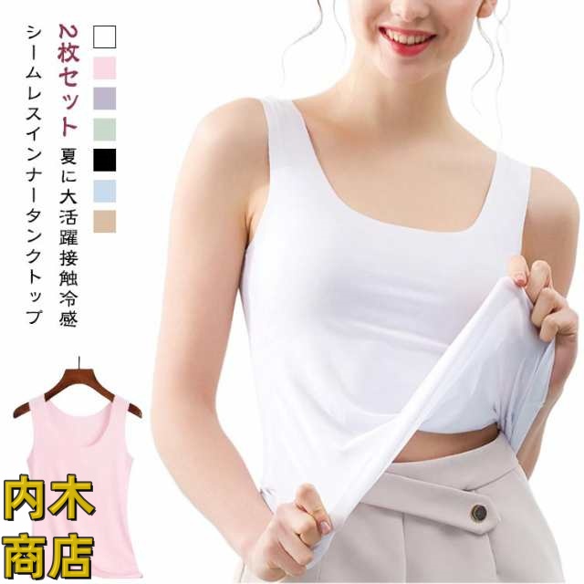 レディース 脇縫いなし シームレス ひんやり素材 ノースリーブ 速乾 やさしい 吸汗 タンクトップ 接触冷感 抗菌 薄手 女性 インナー 定番 肌着 婦人 防臭 下着 無縫製 2枚セット 2枚セット 柔らか ソフト