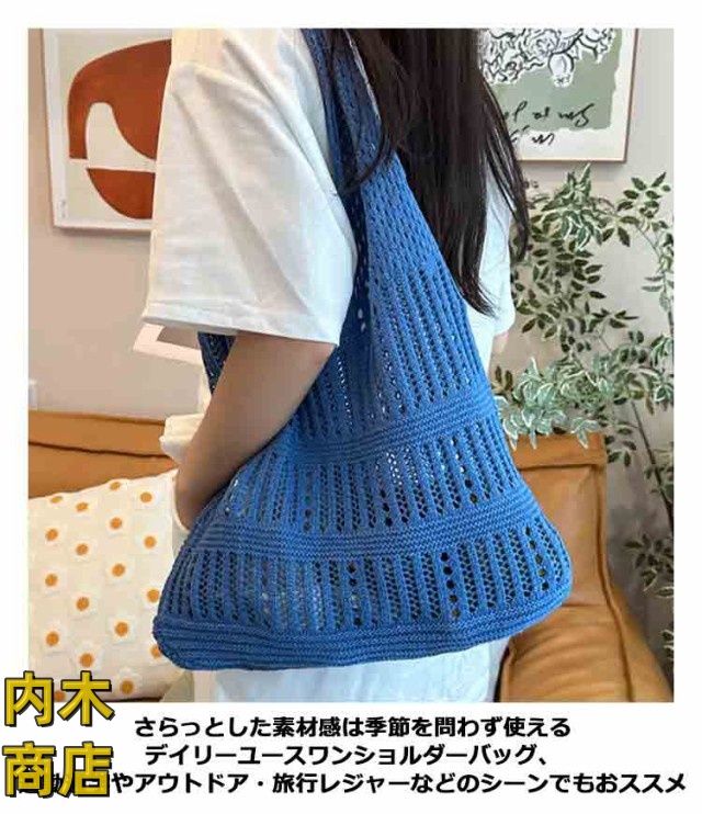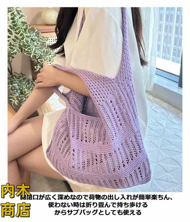 | A4サイズも収納可能な大容量タイプ、普段使いでも差し色アイテムとしても大活躍の透かし編みニットバッグ 開閉口が広く深めなので荷物の出し入れが簡単楽ちん、使わない時は折り畳んで持ち歩けるからサブバッグとしても使える さらっとした素材感は季節を問わず使えるデイリーユースワンショルダーバッグ、通勤通学やアウトドア・旅行レジャーなどのシーンでもおススメ | |