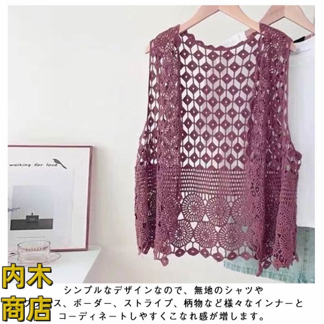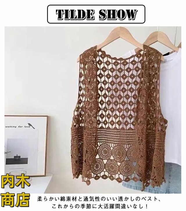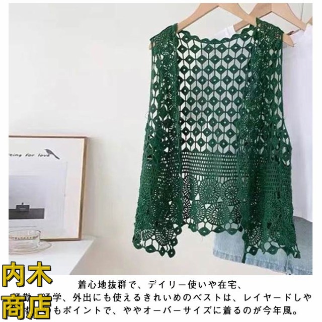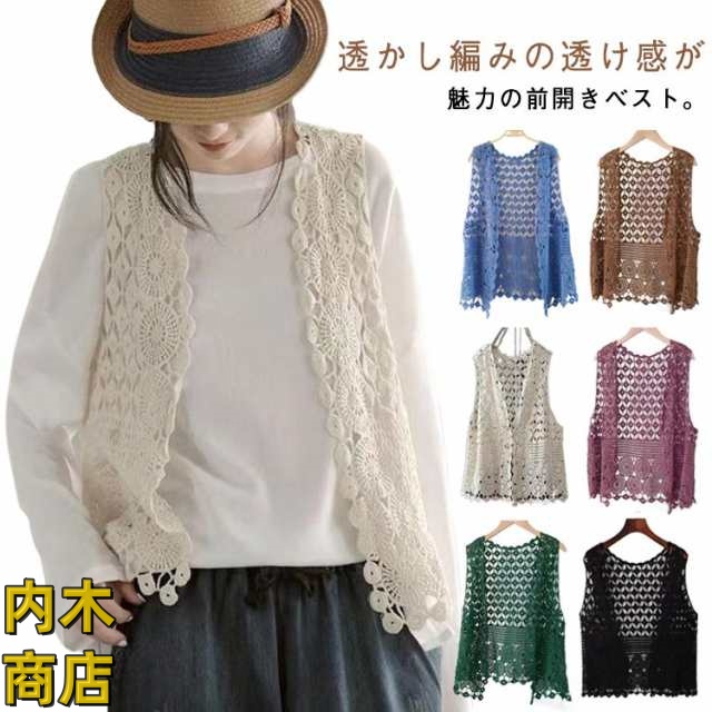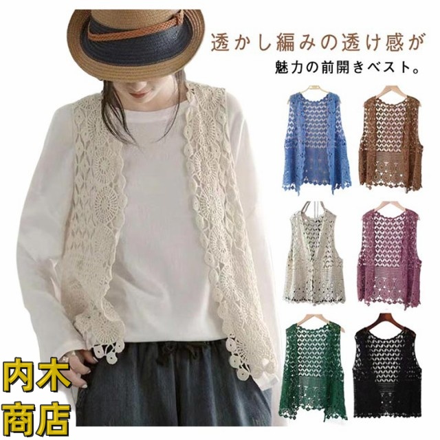 夏物 ノースリーブ レディース ジレ 重ね着 羽織 カジュアル 大きいサイズ きれいめ 贈り物 オシャレ 透かし編み プレゼント サマー ベスト コーデ 薄手 春夏 袖なし ゆったり 春物 レイヤード 体型カバー シンプル ベスト 無地 前開きベスト