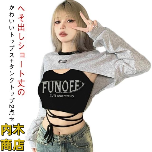 | へそ出しショート丈のかわいいトップス+タンクトップ2点セット ダンスレッスンや衣装、ストリートファッションにバッチリ! 薄手なのでダンスレッスンなどでもかさばらずに着れちゃいます♪ ややゆったりしたシルエットですので、ジャストサイズでもストレスの無い着心地です。 | |