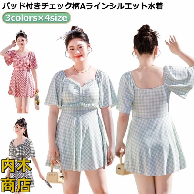 | 3colors×4size パッド付きチェック柄aラインシルエット水着 | |