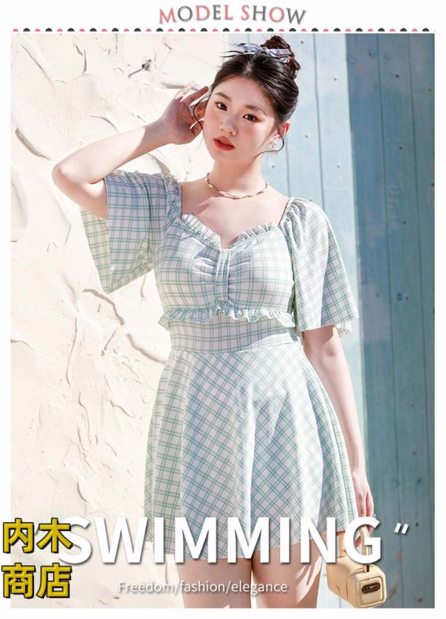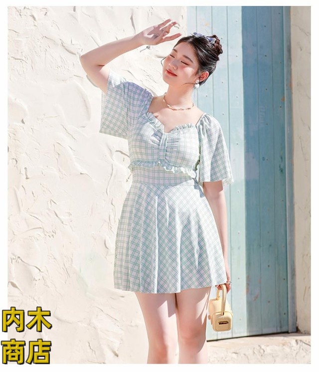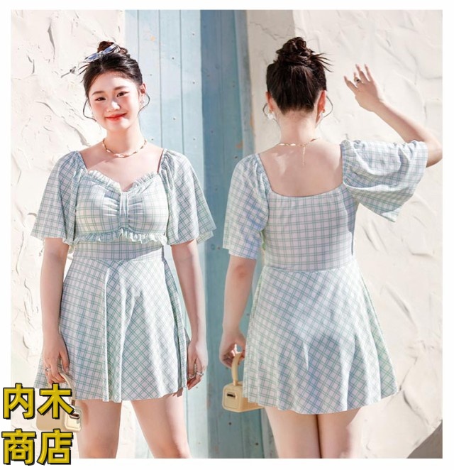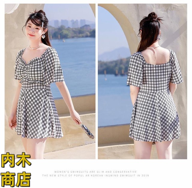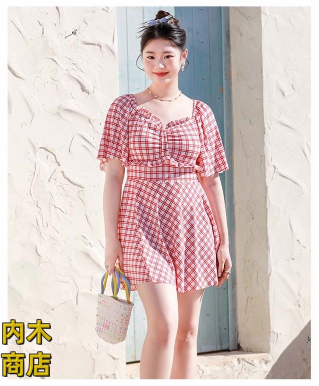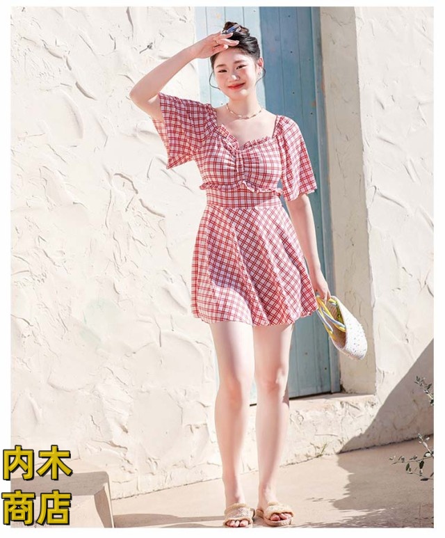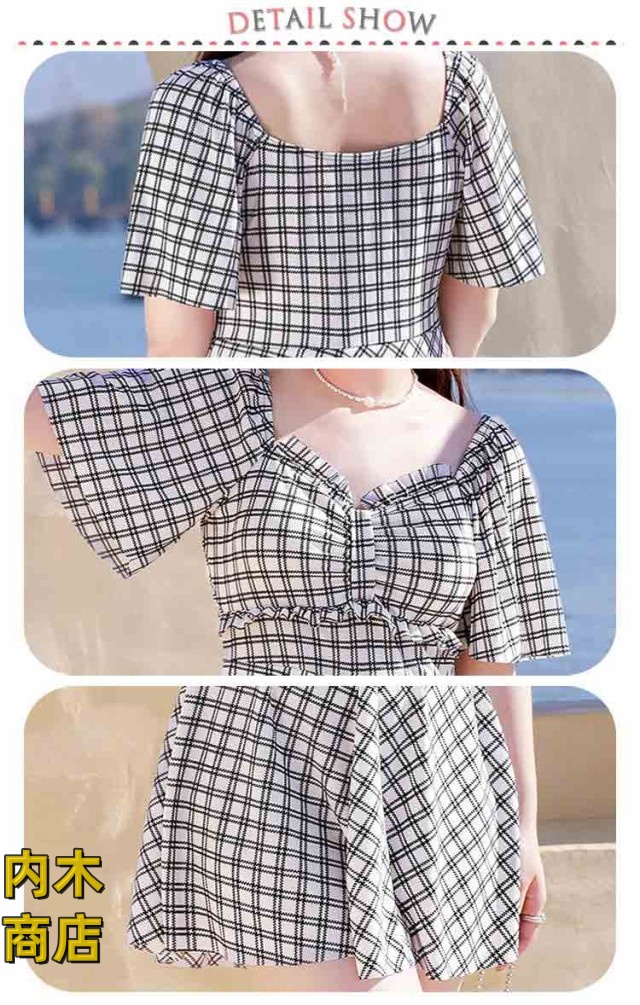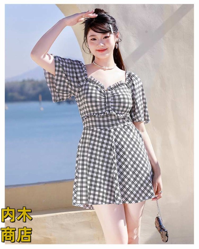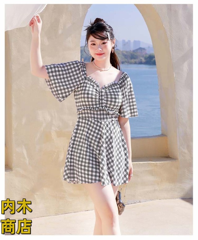 レディース 大きいサイズ おしゃれ 妊婦服 ネック ラインスカート 妊婦 マタニティ パッド付き ワンピース マタニティ ワンピース きれいめ 水着 ラインワンピース チェック柄 水着 送料無料 体型カバー フリル袖 産前産後兼用 パンツ付き
