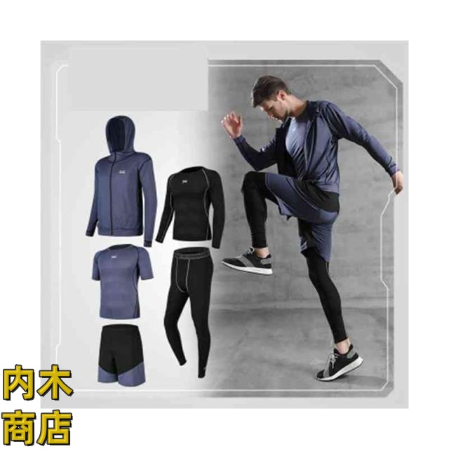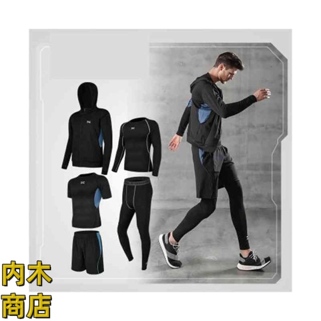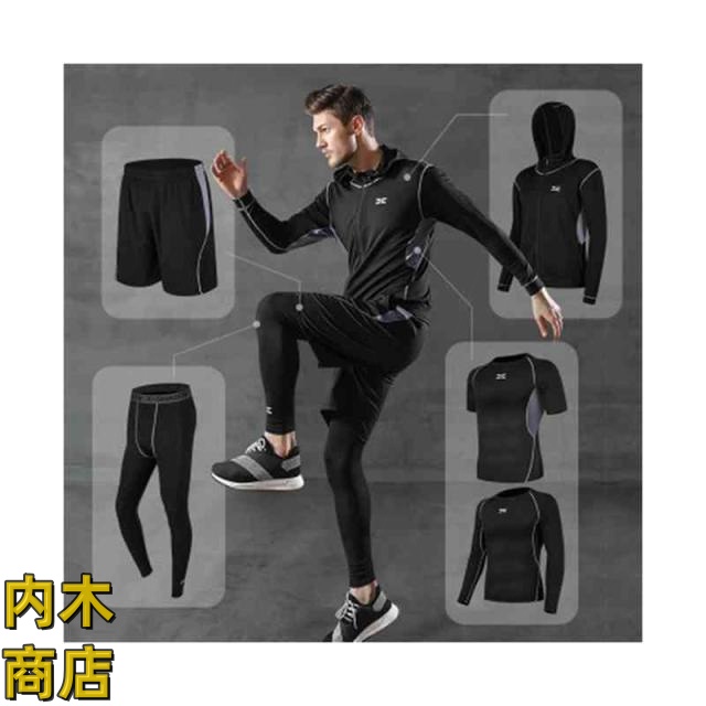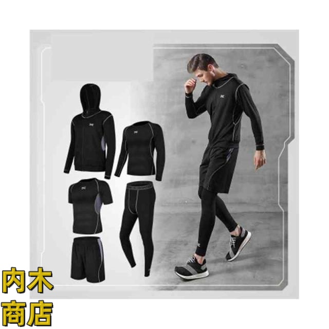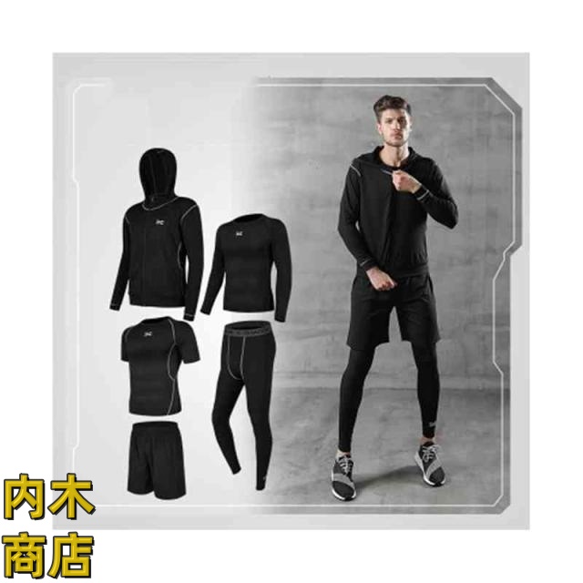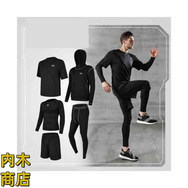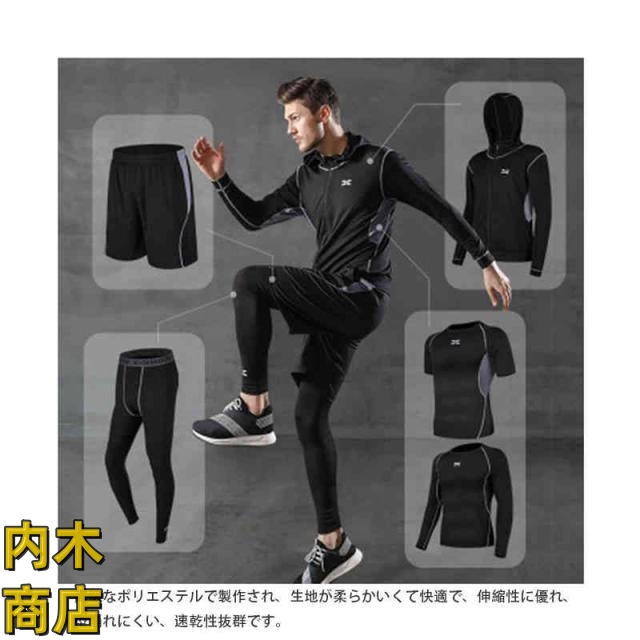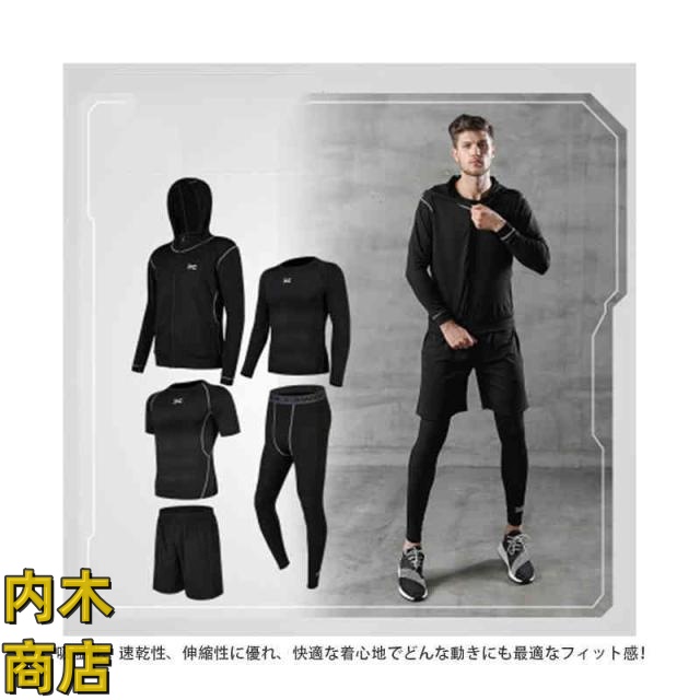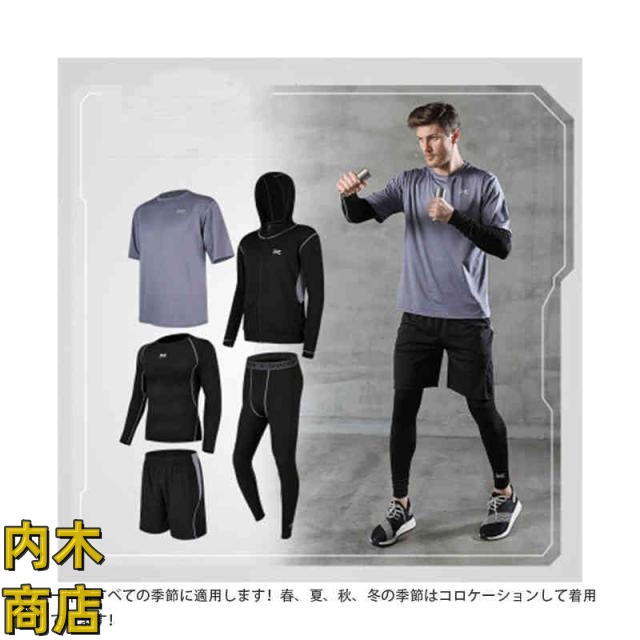 着回し メンズ 5点セット 吸汗速乾 通気防臭 半袖 室内スポーツウェア スポーツウェア アウトドア インナータイツ トレーニングウェア ジム 伸縮性 ハーフパンツ 速乾素材 ランニングウェア タイツ 長袖 パーカー