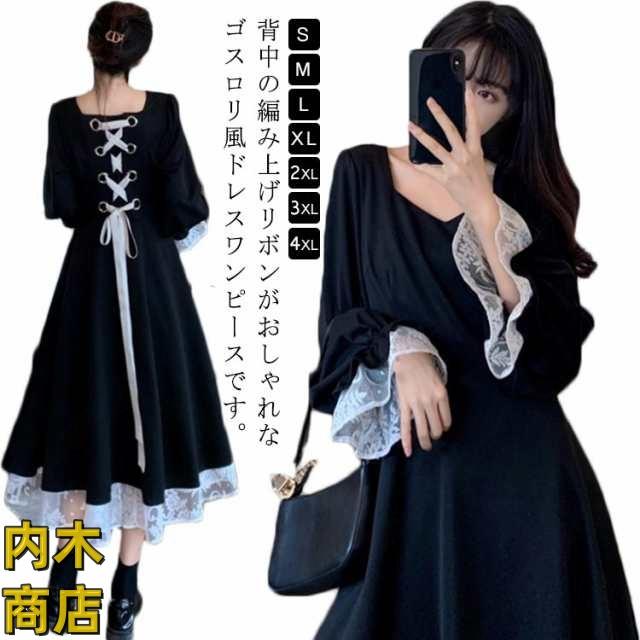 レビュー高評価 生活快適特集 ギフトにも最適 収納便利 お嬢様 お出かけ バック編み上げリボン ロング 在庫わずか パーティー ?4!ゴスロリ コスプレ 30代 40代 パーティードレス レース切り替え キレイめ ワンピース 長袖 ロリータ クリスマス