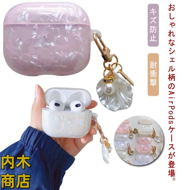 即納OK 保護カバー カバー レディース 季節限定アイテム 品質安心 お揃い パール ペア 3 韓国 可愛い ケース シェル かわいい 第1世代 第2世代 エアポッド 第3世代 貝殻 SNS話題 チャーム付き エアーポッズ 即納対応中 送料無料