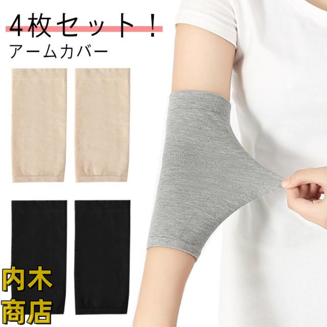 売れ筋アイテム ランキング常連 人気急上昇 二の腕サポーター レディース メンズ 通気性 品質安心 4枚セット!タトゥー隠し 日焼け対策 黒 綿 肌色 傷跡かくし かくし ストレッチ 刺青隠し コットン フィット 引き締め カット グレー ベージュ