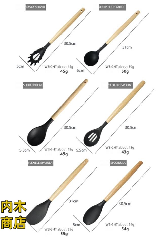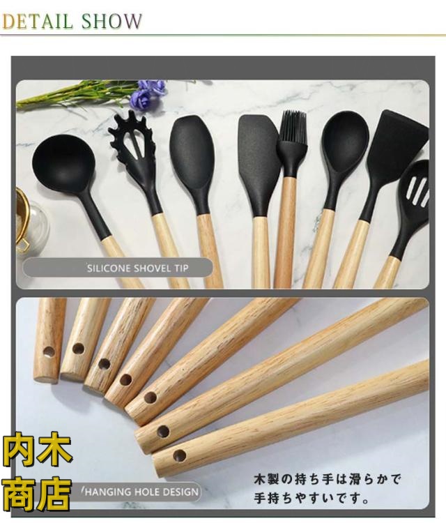 | 全6色!キッチンツール12点セット。 安全なシリコン素材で作られたキッチンツール。統一感と清潔感が備え、キッチンの雰囲気に合わせ、飾れるようになります。 高品質なシリコン製で、柔らかくて鍋などに傷をつけることを心配する 必要がありません。変形・変色もしにくく、デザイン性と機能性が兼ね 備えたキッチンツールです。 ノンスティックで食材が付着することによるロスも少なく、洗浄も簡単です。 汚れても水洗い出来ることでお手入れがとても簡単です。 先端はシリコン製なので、安全素材で耐高低温性に優れ、耐久性も備えています。 食器洗い機、食器乾燥機にも対応できます。 木製の持ち手は滑らかで手持ちやすいです。 2WAYで収納便利。壁に掛けて収納ができるのと専用の収納ボックスにすっきりと収まる。 | |