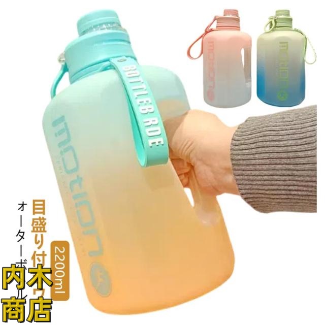 | 2200ml 目盛り付きウォーターボトル 常温で水分補給をするアスリートやヨガなど、スポーツシーンで大活躍します 広い口径は、氷やフル一ツなどが入れやすく、お手入れが簡単なのもうれしい | |