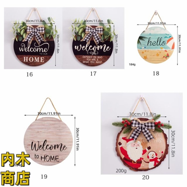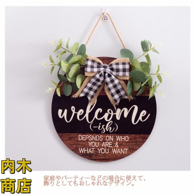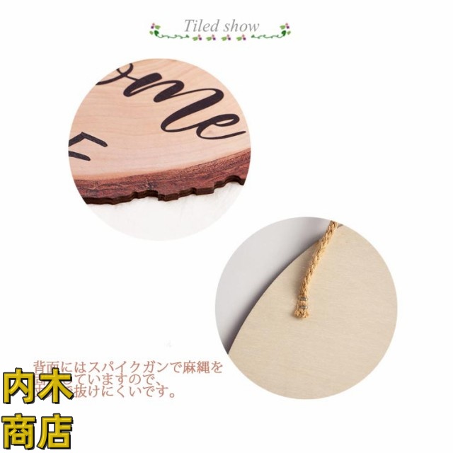| ナチュラルなウッドウェルカムプレート。 木製ならではの風合いの良さがあります。 背面にはスパイクガンで麻縄を固定していますので、丈夫で抜けにくいです。 家庭やパーティーなどの場合に使えて、飾りとしてもおしゃれなデザイン。 | |