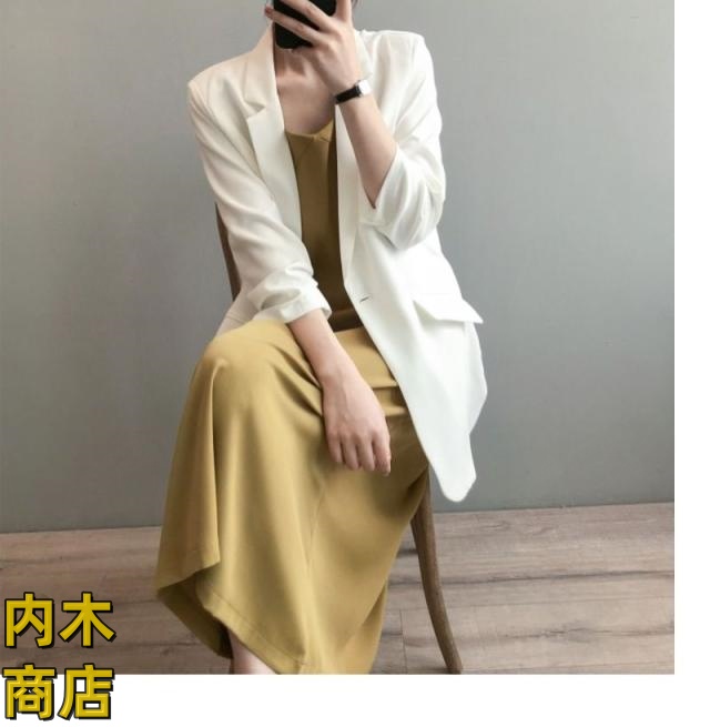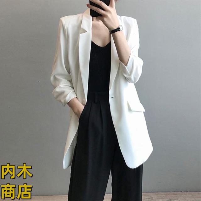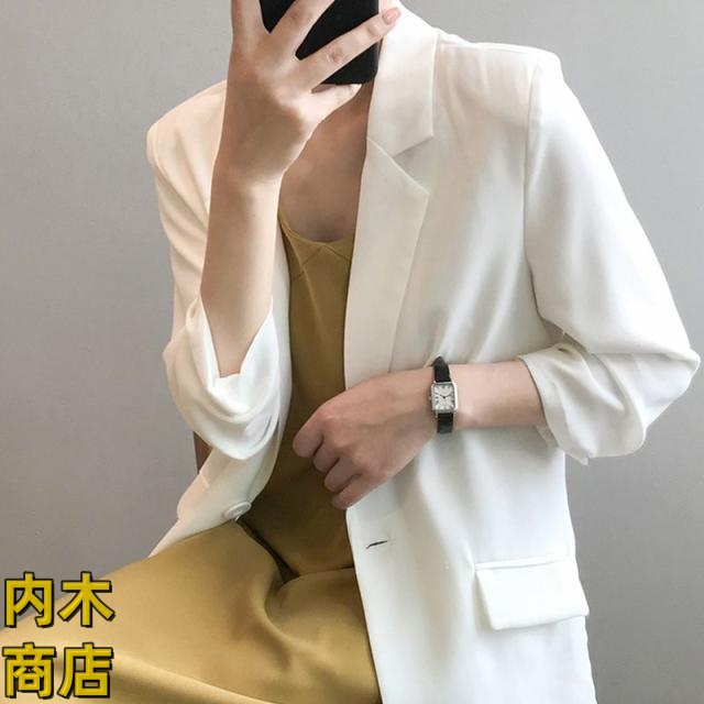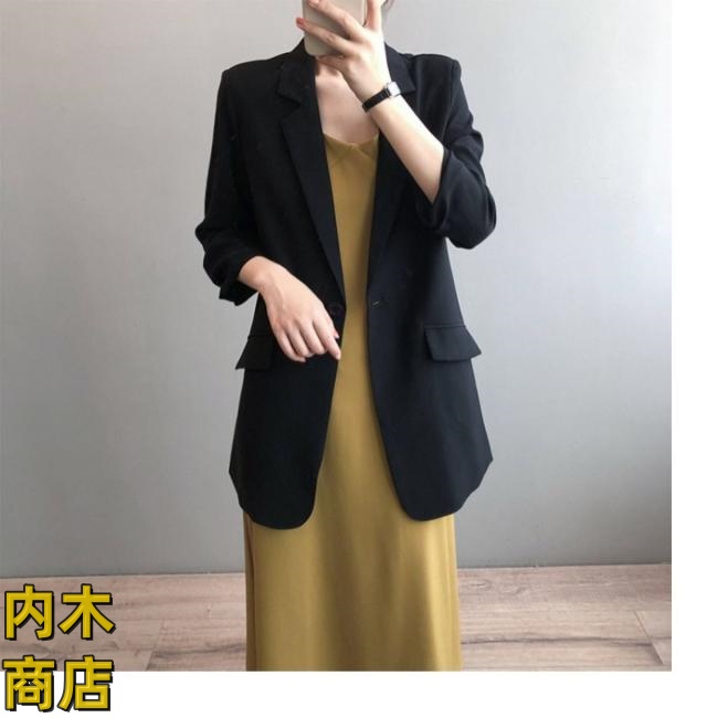 ゆったり レディース ロング丈 ジャケット 通勤カジュアル エレガンス 卒業式 面接 七分袖 上品 テーラード フォーマル サマージャケット