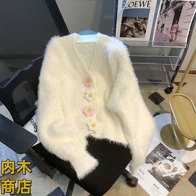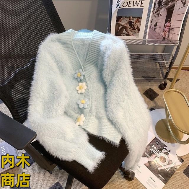 ふわふわ モコモコ 大人 レディース アウター 冬服 ニット 韓国 カーディガン きれいめ 秋冬 ニットカーディガン 羽織 コート