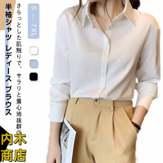 可愛い ワイシャツ 半袖シャツ シャツ カット 送料無料 襟付き スキッパー オフィス ビジネス 夏 対策 接触冷感 ブラウス カットソー カジュアル 事務服 レディース ノーアイロン フォーマル ホワイト ストレッチ トップス 春夏用 半袖 通勤 薄手 オフィス 前開き