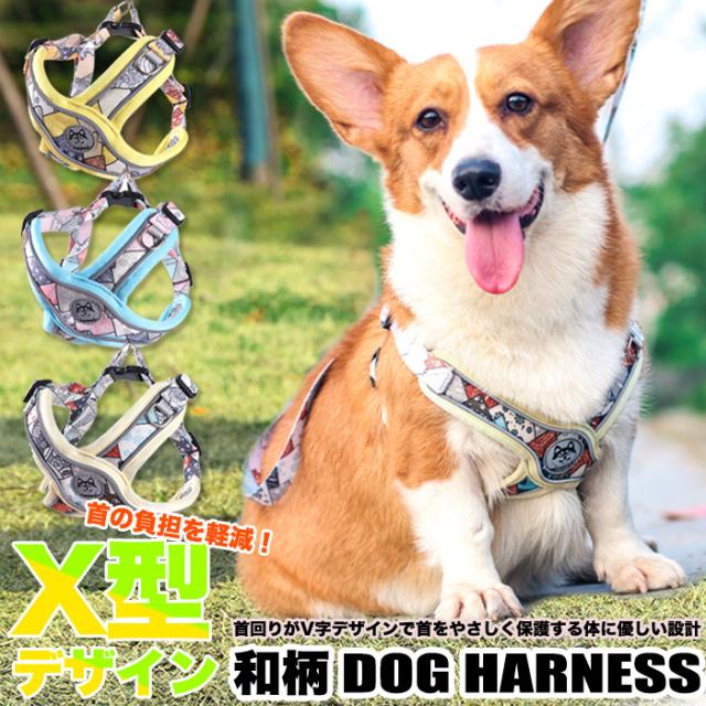 犬 猫 和柄 ハーネス X型 体に優しい V字仕様 脱げにくい 軽量 涼しい 快適 ウェアハーネス 光反射 ペット 服 胴輪 h0621