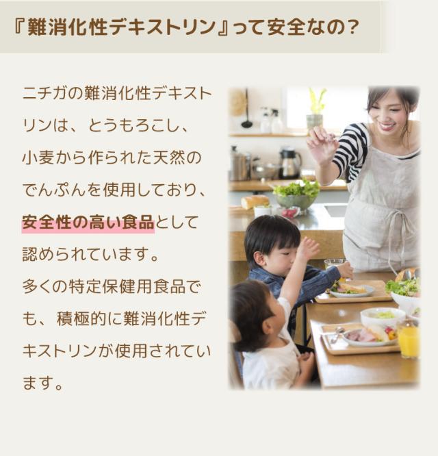 天然の澱粉(とうもろこし)から作られ、消費者庁や米国食品医薬品局に安全性の高い食品として認められています。