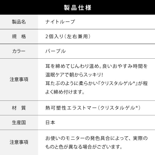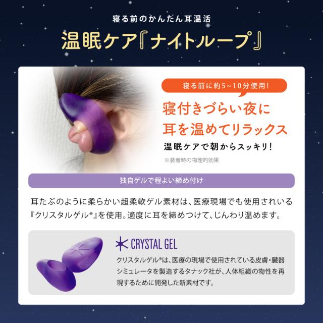ナイトループ タナック【美容セラピスト監修】 耳温活 日本製 睡眠 快眠グッズ 快眠 安眠 耳 温め 温める 寝る前 あったかグッズ 不眠症 熟睡 対策 更年期 グッズ 副交感神経 寝つき 寒さ対策 冷え性対策 リラックスおやすみ リフレッシュ 軽量 睡眠障害 クリスタルゲル