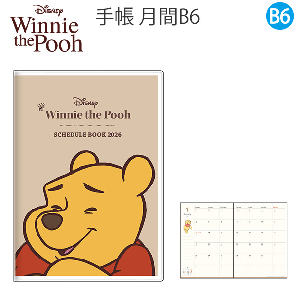 「ディズニー くまのプーさん B6マンスリー手帳 2026」は、愛らしいプーさんの表情が楽しめるデザインの月間スケジュール帳です。毎日の予定管理を楽しく彩ってくれます。