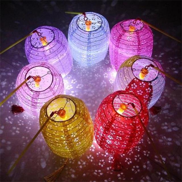 ◆商品名:DUOLEIMI 提灯 お盆 紙ちょうちん 透かし彫り 紙提灯 お盆飾り LED付き 燈籠 カラフル 10個セット (楕円)
