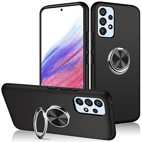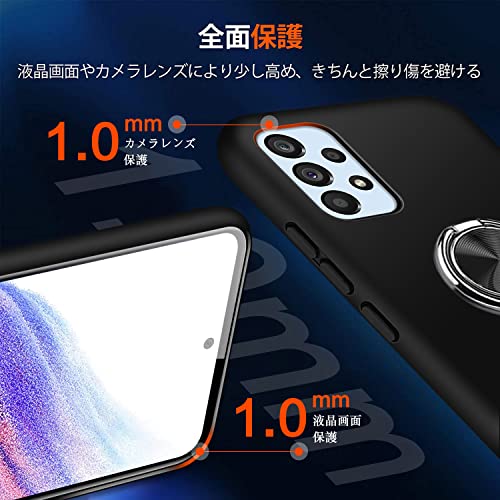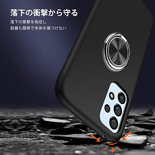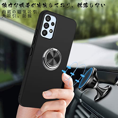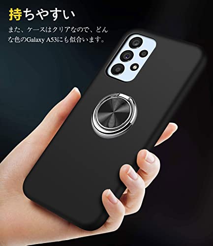Galaxy A53 5G ケース 耐衝撃 TPU SC-53C カバー 薄型 軽量 リング付き タンド機能 落下防止 滑り止め 車載ホルダーストラップホール付き (ブラック) 送料無料