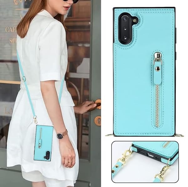 Galaxy Note10 Pro SC-01M / SCV45 ケース 手帳型 肩掛け 首かけ 斜めがけ ショルダー カード収納 カバー RFID機能 PUレザー 手帳型ケース ストラップ スタンド スマホショルダー 軽量 耐久性 便利 落下保護 マネーブルー 送料無料