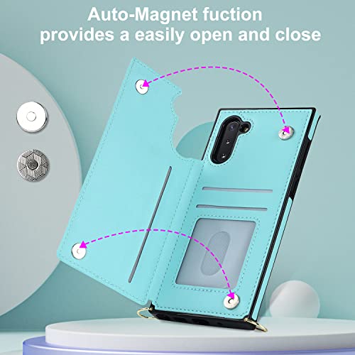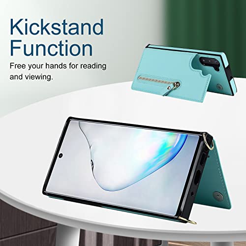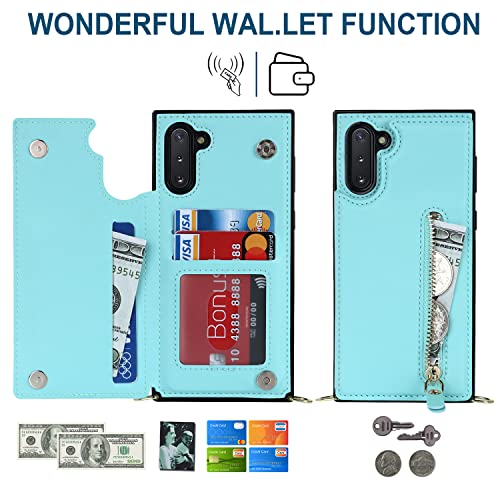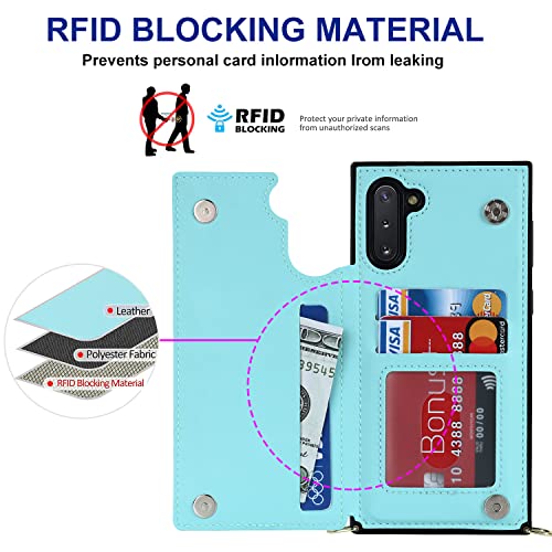 Galaxy Note10 Pro SC-01M / SCV45 ケース 手帳型 肩掛け 首かけ 斜めがけ ショルダー カード収納 カバー RFID機能 PUレザー 手帳型ケース ストラップ スタンド スマホショルダー 軽量 耐久性 便利 落下保護 マネーブルー