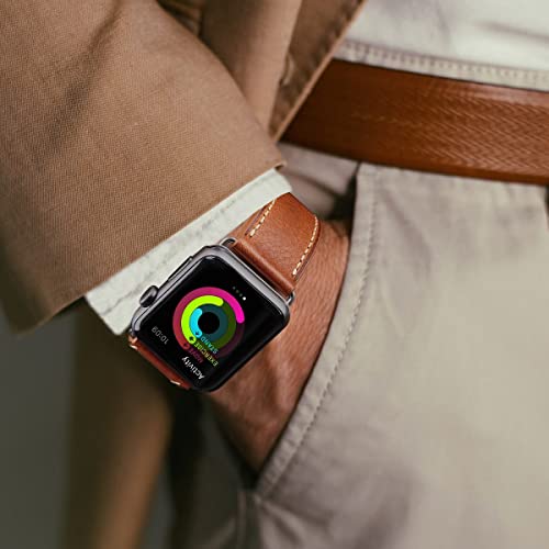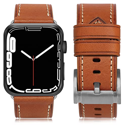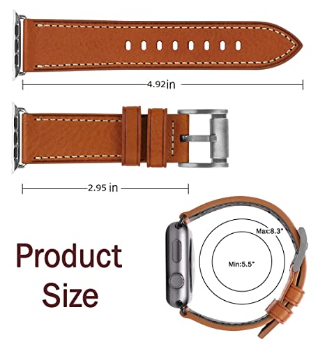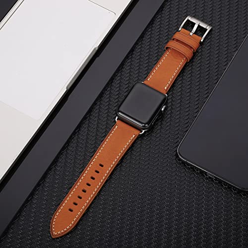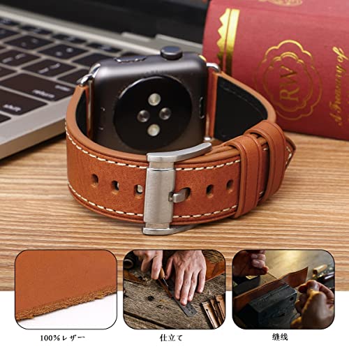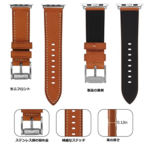Apple Watch バンド 42mm 44mm 45mm46mm 49mm 本革 交換ベルト 交換用 代替品 Apple Watchシリーズ 10 / 9 / 8 / 7 / 6 / 5 / 4 / 3 / 2 / 1 / Ultra(42mm44mm45mm46mm49mm ブラウンストラップ / シルバーバックル)