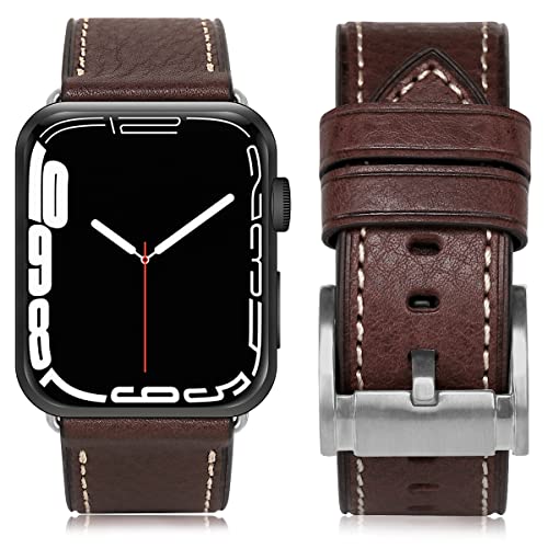 Apple Watch バンド 42mm41mm 40mm 38mm 本革 交換ベルト 交換用 代替品 Apple Watchシリーズ 10 / 9 / 8 / 7 / 6 / 5 / 4 / 3 / 2 / 1 / Ultra(38mm40mm41mm42mm コーヒーストラップ / シルバーバックル) 送料無料