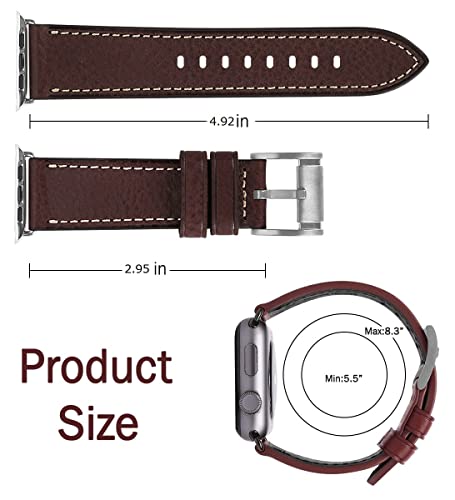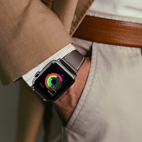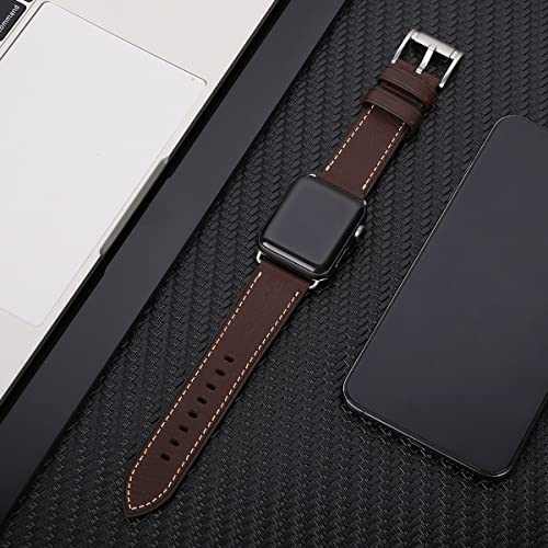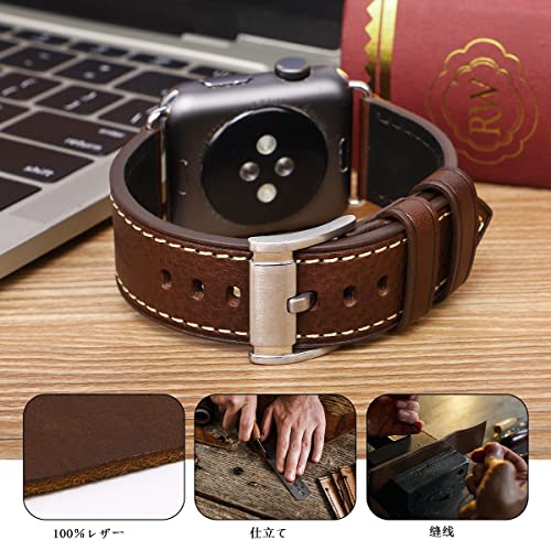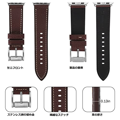 Apple Watch バンド 42mm41mm 40mm 38mm 本革 交換ベルト 交換用 代替品 Apple Watchシリーズ 10 / 9 / 8 / 7 / 6 / 5 / 4 / 3 / 2 / 1 / Ultra(38mm40mm41mm42mm コーヒーストラップ / シルバーバックル)