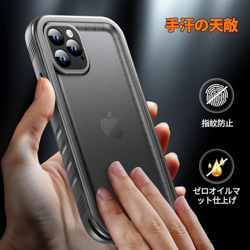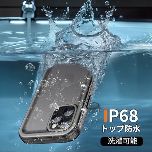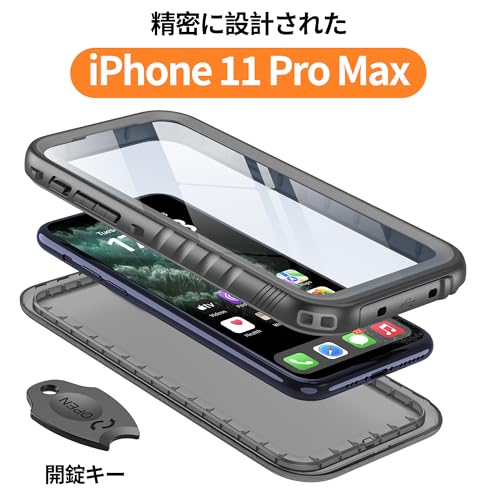 iPhone 11 Pro Max ケース 完全防水 防塵 耐衝撃 360度 全面 両面 軽量 カメラ保護 ストラップ付き 海 お風呂 水中撮影 洗濯可能 iPhone11ProMax ケース 最強 頑丈 人気 QI充電 iPhone11プロマックス 「3眼レフ-6.5インチ-黒」 送料無料