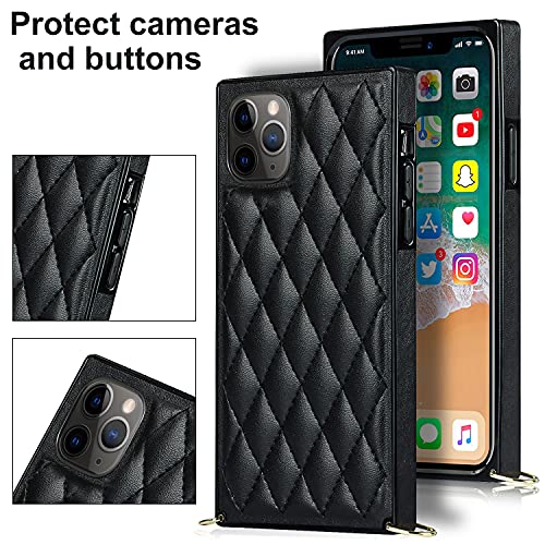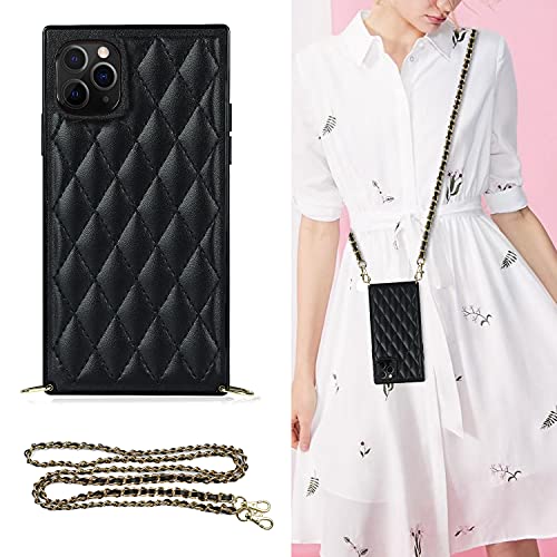 iPhone 12 Pro/iPhone 12 6.1(2020)スマホ ケース iPhone 12 スマホ ケース 肩掛け 首かけ 斜めがけ ショルダー スマホ 携帯 ケース アイフォン 12 Pro ショルダー 携帯 ケース iPhone 12 ショルダー iPhone 12 スマホ 首掛けケース 上質PUレザー[金属チェーンン]iPhone 12 Pro 人気スマホケース case 付きの専属ストラップ同梱なのでファスナースタイル iPhone 12 Pro カバー Qi急速充電超薄型 携帯のケース可愛い チェーン 携帯斜めがけストラップ 衝撃吸収 スマホ ケース ストラップつき 調節可能 レンズ保護 - [ブラック]
