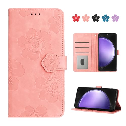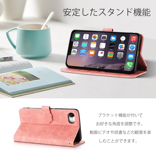 iPhone 16E / iPhone SE4 ケース 手帳型 ピンク フローラル 桜柄 マグネット式 スタンド機能 カード収納 耐衝撃 レザー TPU ケース