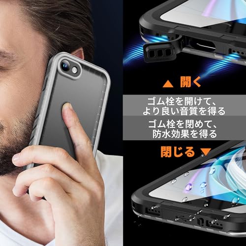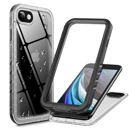 iPhone SE2 / SE3 / iPhone8 / 7 ケース 防水 透明 防塵 耐衝撃 お風呂 海 ストラップ付き 360度 全面 両面 頑丈 水中撮影 QI充電 顔認証 可愛い アイフォンSE「第2世代」2020 用/アイフォンSE「第3世代」2022 用「4.7インチ-黒・クリア」 送料無料
